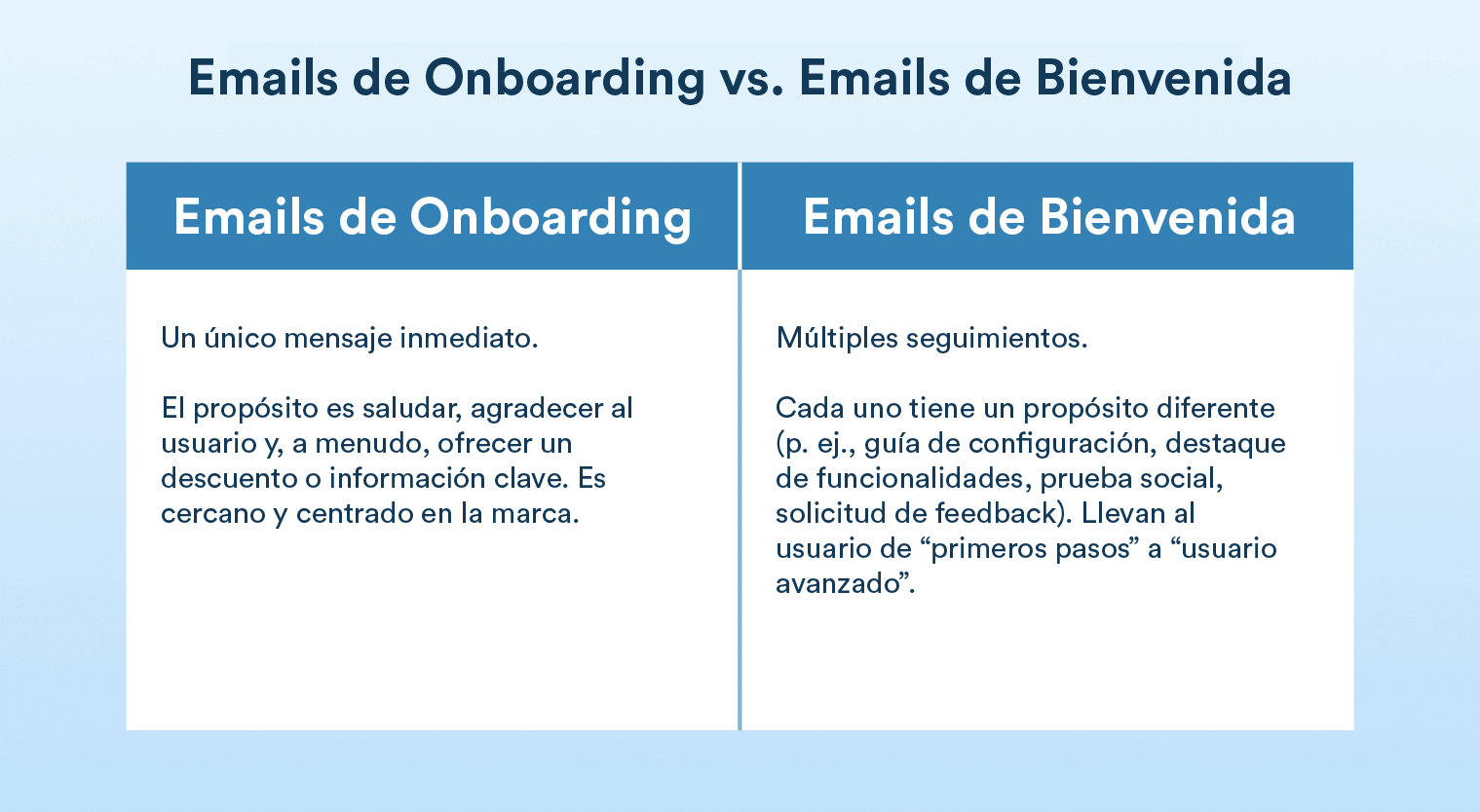 El onboarding, en cambio, va más allá. Incluye una serie de correos diseñados para guiar, activar y retener al usuario.