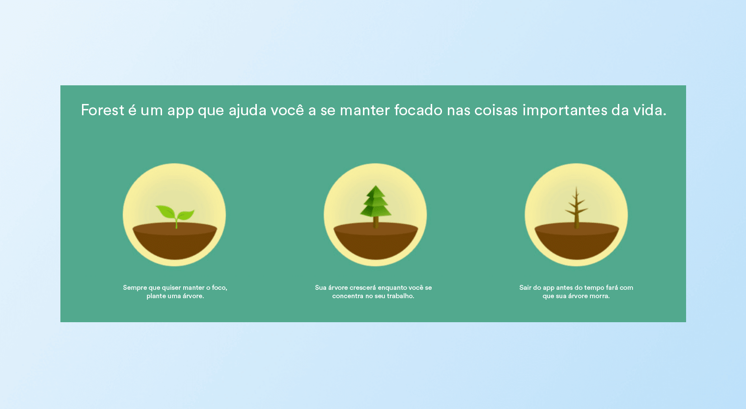 O Forest incentiva o foco ao fazer crescer uma árvore virtual quando os usuários evitam distrações. Sair do aplicativo mata a árvore, criando uma consequência tangível para a quebra da concentração. Com o tempo, os usuários podem cultivar uma floresta inteira representando sua produtividade.