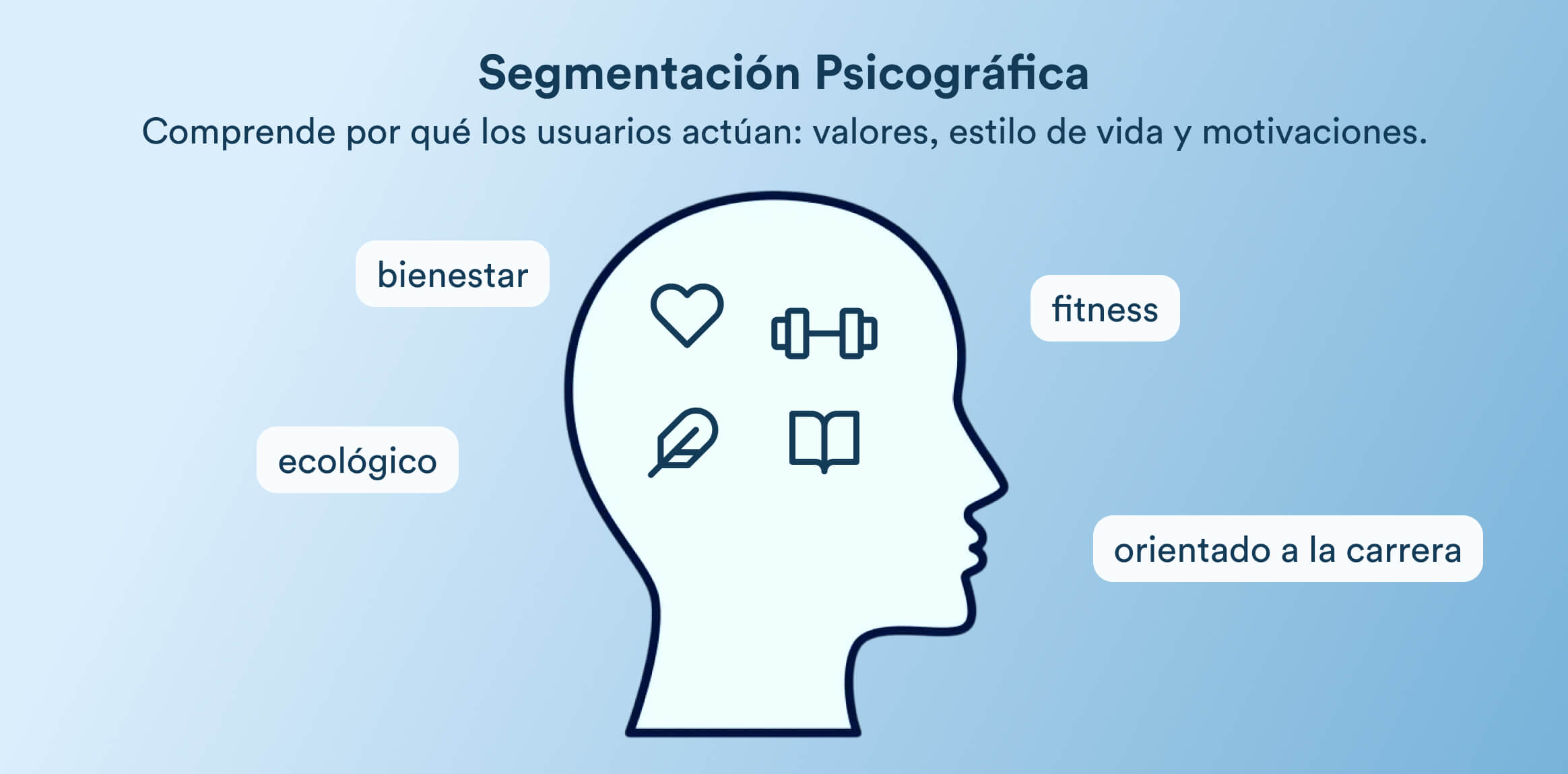Mientras que los datos demográficos te dicen quién es el cliente, los datos psicográficos revelan por qué se comporta como lo hace. La segmentación psicográfica analiza valores, creencias, rasgos de personalidad, elecciones de estilo de vida y motivaciones.