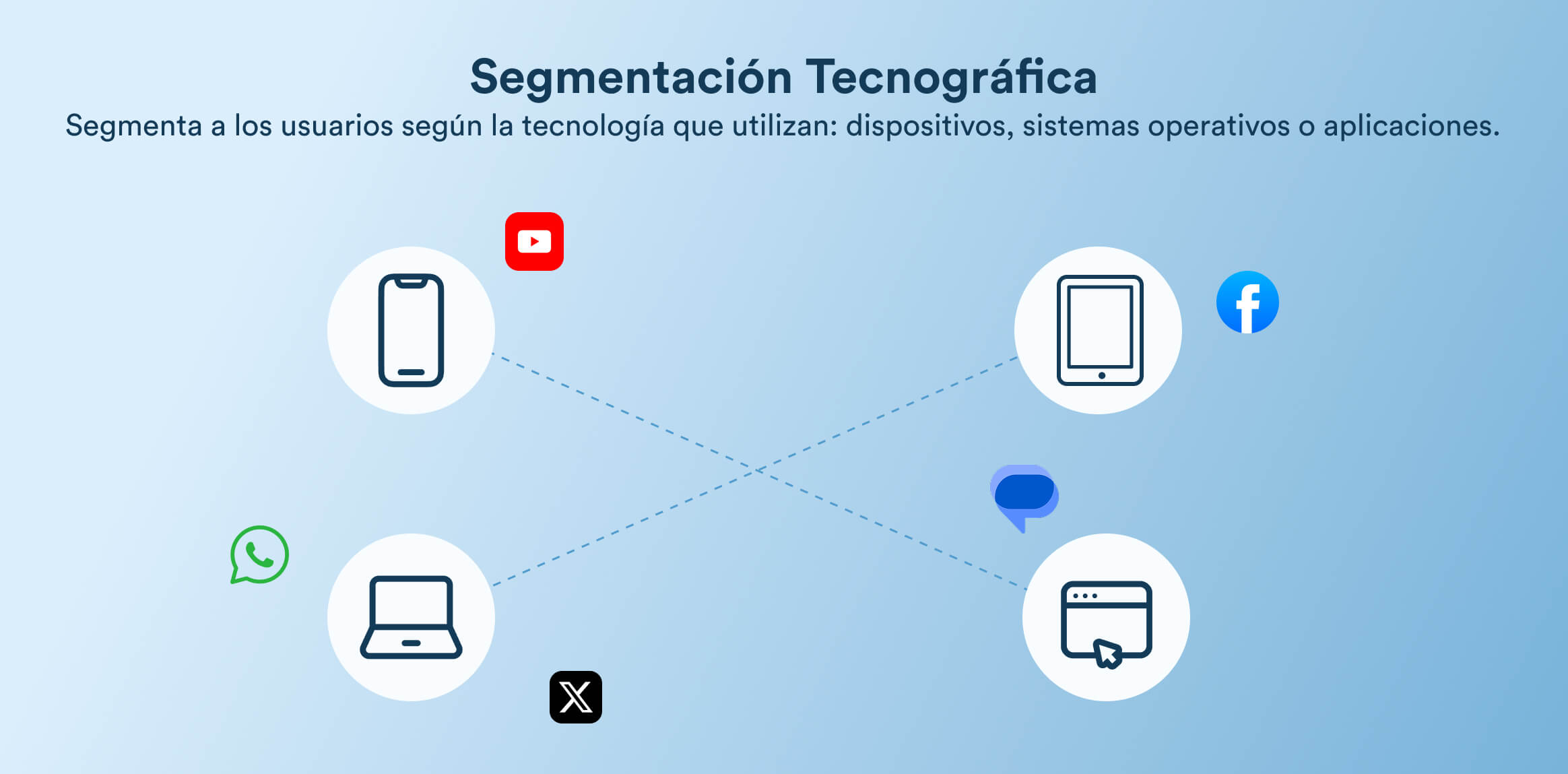 La segmentación tecnográfica agrupa a los usuarios según la tecnología que utilizan, como sistemas operativos, dispositivos, navegadores o versiones de aplicaciones. Es especialmente útil para marcas digitales y app-first que buscan optimizar el rendimiento y la experiencia del usuario en diferentes plataformas.