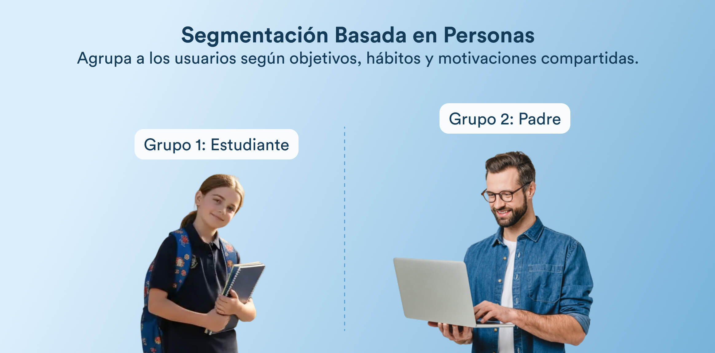 En esencia, la segmentación trata de entender a las personas. Esto puede implicar dividir a los usuarios por ubicación, hábitos, comportamientos o incluso por el valor que aportan a tu negocio.