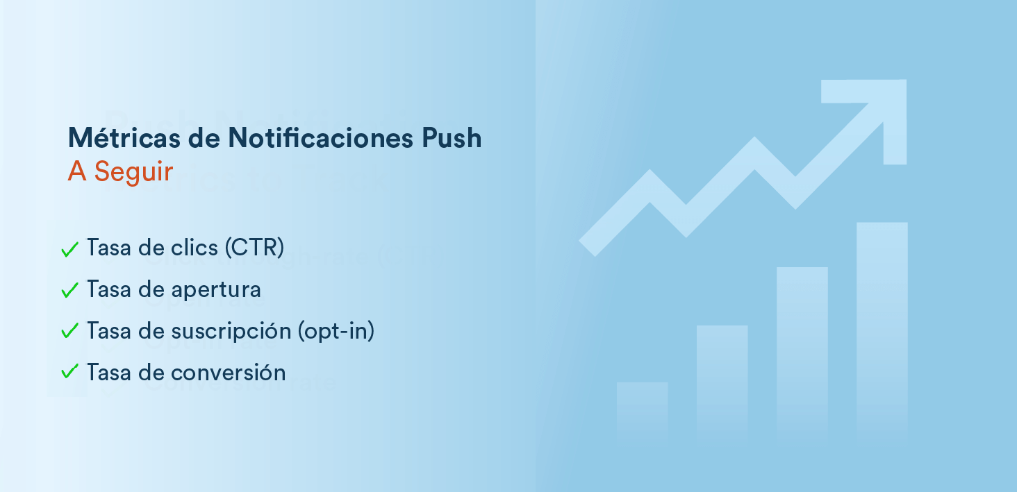 Monitorea las métricas clave de notificaciones push. Analiza tasas de apertura, CTR, tasa de entrega, conversiones y desinstalaciones. Observa también señales negativas, como picos en opt-outs después de una campaña.