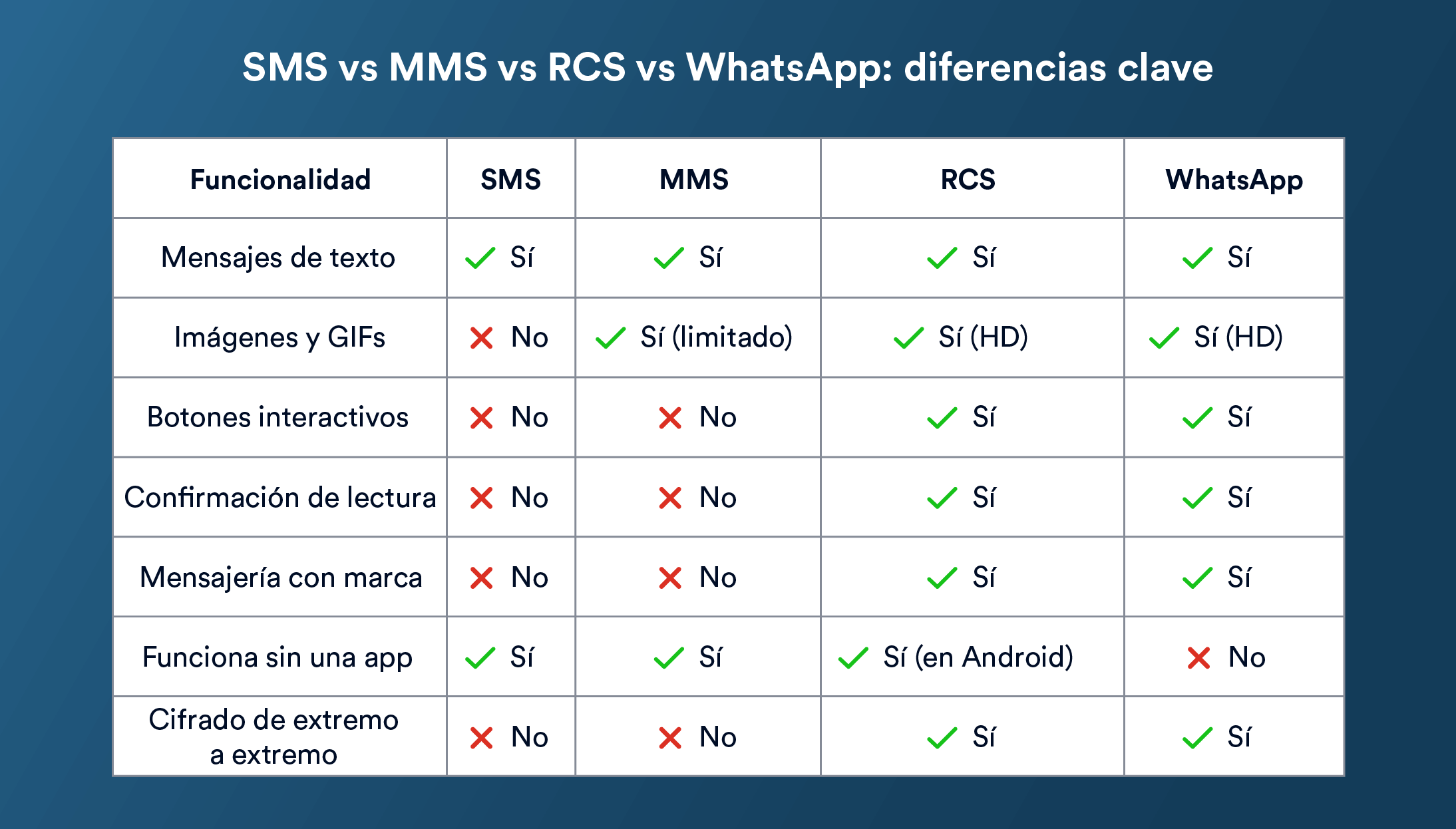 SMS vs MMS vs RCS vs WhatsApp: diferencias clave