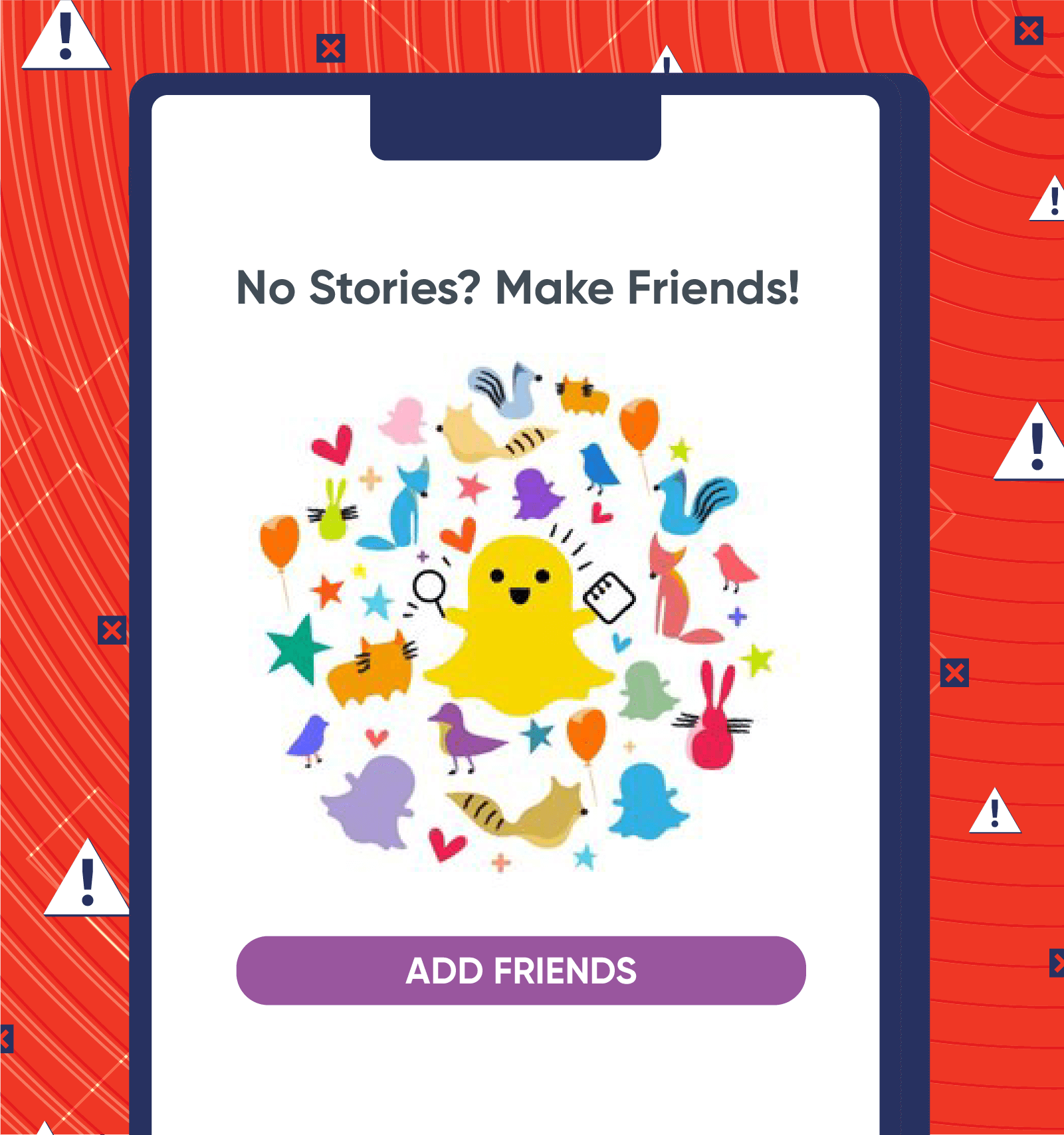 When a user runs into a snag in your app, what do they see? Snapchat found a visual and creative way to show users that in order to see stories, they need to make friends first. So when they stumble upon this empty page, they aren’t left wondering where to go.