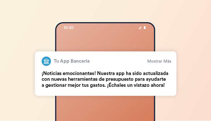 Los bancos utilizan notificaciones push para fortalecer el engagement del cliente al mantener a los usuarios informados sobre nuevas funcionalidades o servicios. Por ejemplo, un banco puede notificar sobre una próxima actualización de la app que incluya nuevas herramientas de presupuesto, incentivando a los usuarios a explorarlas activamente.