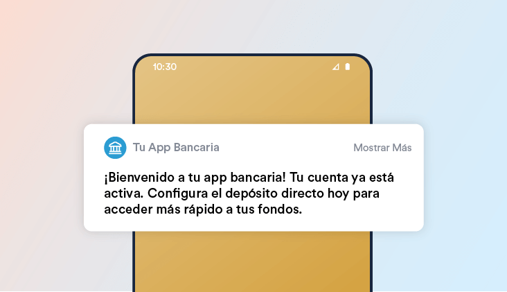 Las notificaciones push desempeñan un papel clave en el Onboarding de nuevos usuarios. Después de registrarse en una cuenta de banca en línea, los usuarios pueden recibir notificaciones que los guíen a través de las funcionalidades de la app, como configurar depósitos directos o vincular cuentas externas.