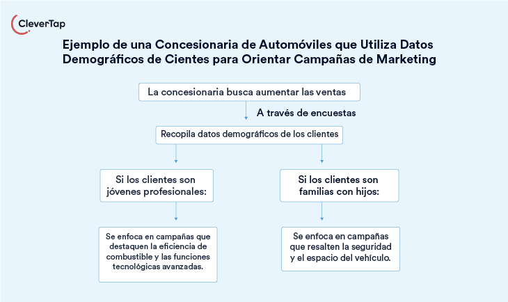 Por ejemplo, un concesionario automotriz que busca aumentar ventas puede recopilar datos demográficos mediante encuestas para entender preferencias. Esta información permite ofrecer amenidades y mejoras vehiculares alineadas con las necesidades específicas del cliente, aumentando la probabilidad de cierre.