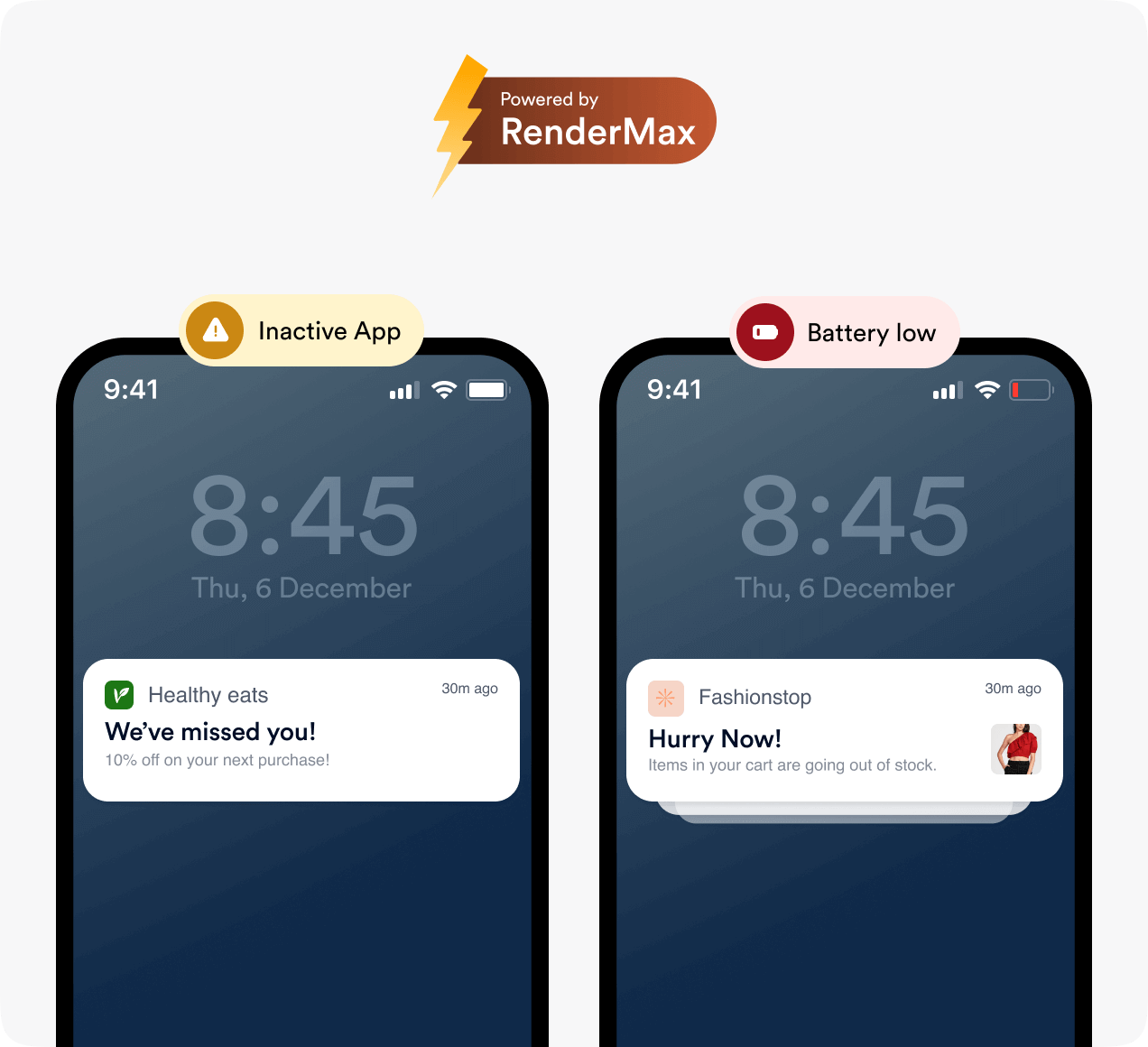 RenderMax stands out from other vendors by adopting a diverse array of cutting-edge proprietary technologies. This approach makes it device-agnostic and ensures that businesses have access to a resilient push notification infrastructure. Consequently, RenderMax continues to thrive amidst industry shifts, guaranteeing an uninterrupted communication channel for businesses and boosting Push Notification Render rates up to 90%.