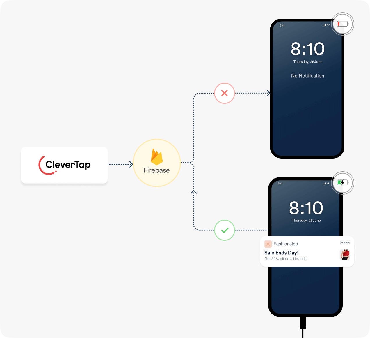 CleverTap’s proprietary technology, maximizes the likelihood of notifications getting rendered i.e. visible on every device even if the app has been inactive or the device is in an battery optimized state.