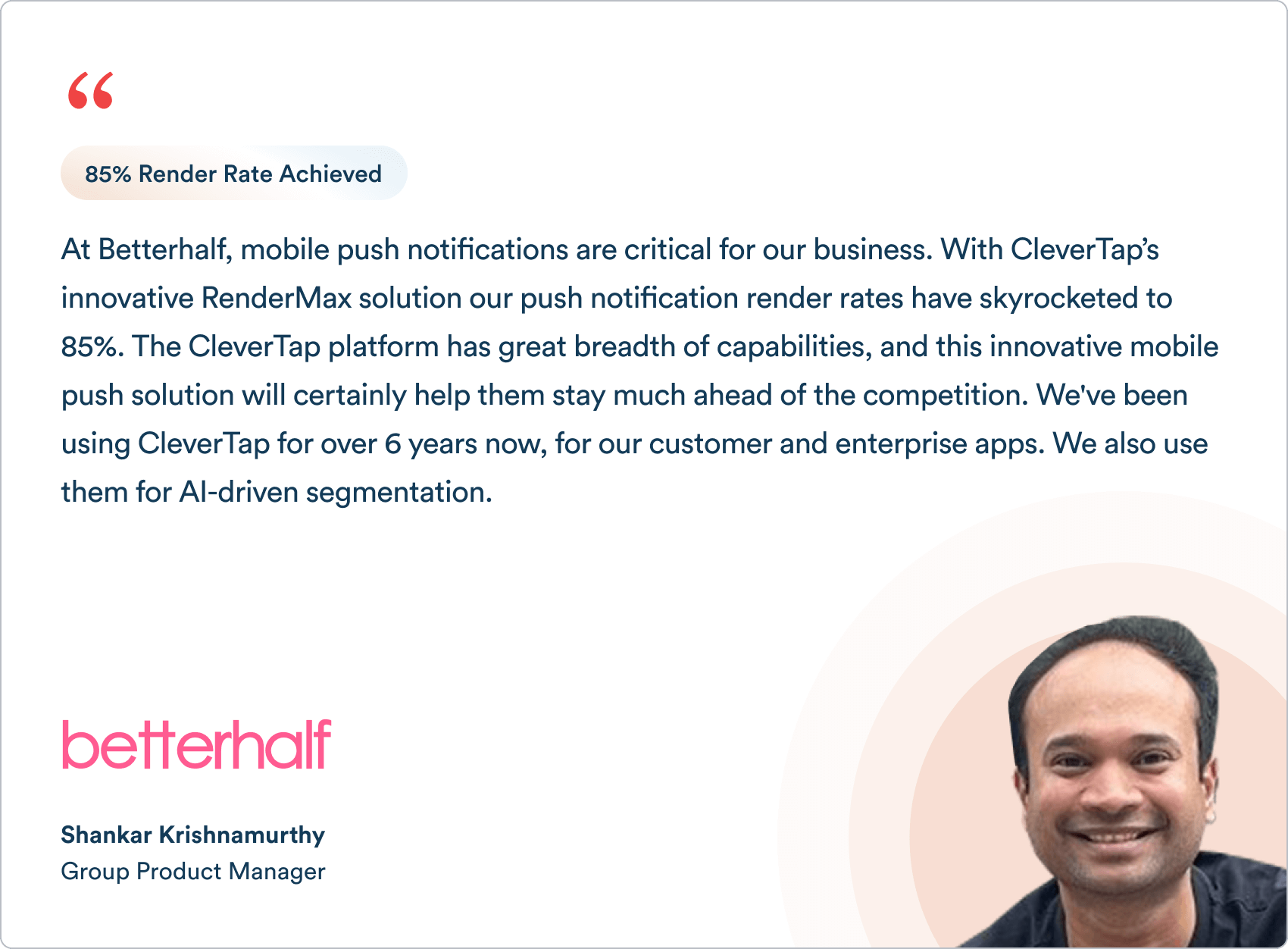 Several businesses have successfully transitioned to CleverTap’s RenderMax technology, experiencing uninterrupted push notification delivery and improvement in render rates.