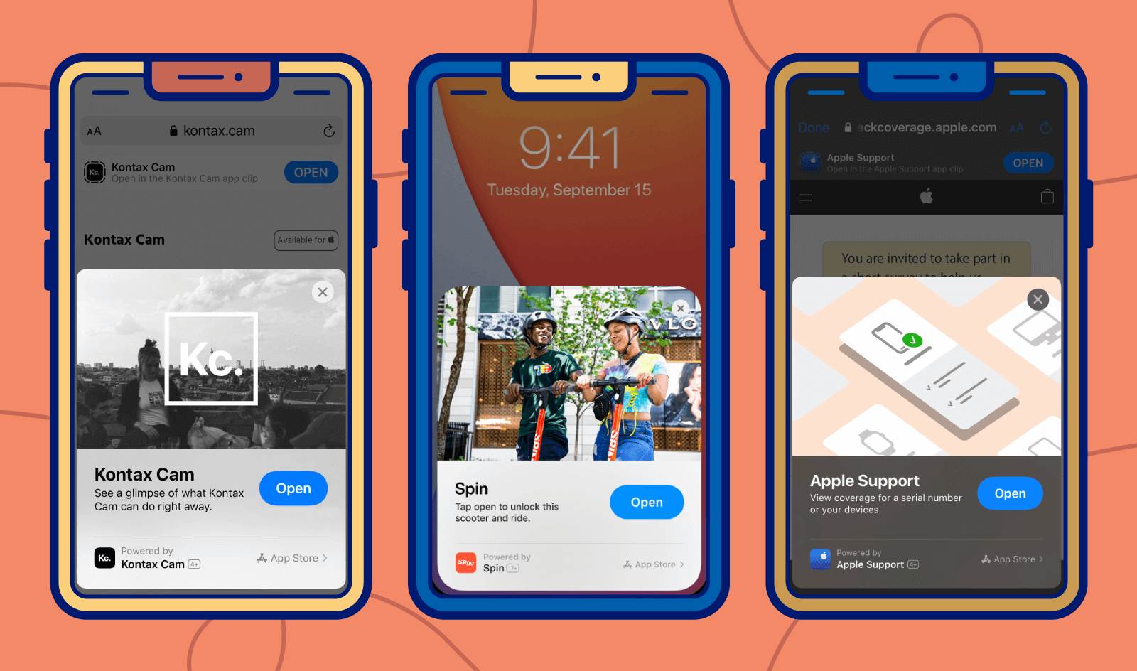 The app clips open in the bottom half of the phone screen with instructions telling users what they can get if they open. If they choose to interact, the full-screen app clip will appear and allow them to complete their action without downloading the full app.