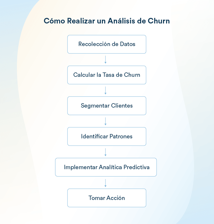 Llevar a cabo un análisis de churn eficaz requiere varios pasos clave que ayudan a las empresas a comprender la rotación de clientes y desarrollar estrategias para mejorar la retención. A continuación, se detalla el proceso: