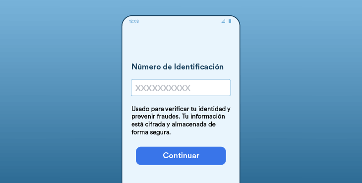 “Se usa para verificar tu identidad y prevenir fraudes. Tu información se cifra y se almacena de forma segura.”