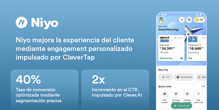 Con la misión de ofrecer banca fluida para la población móvil de India, Niyo aprovechó CleverTap para transformar su onboarding en una experiencia personalizada y guiada por datos. Mediante analítica de comportamiento en tiempo real y segmentación basada en eventos, Niyo identificó puntos de abandono y creó nudges contextuales que guiaron a los usuarios hacia activaciones completas.