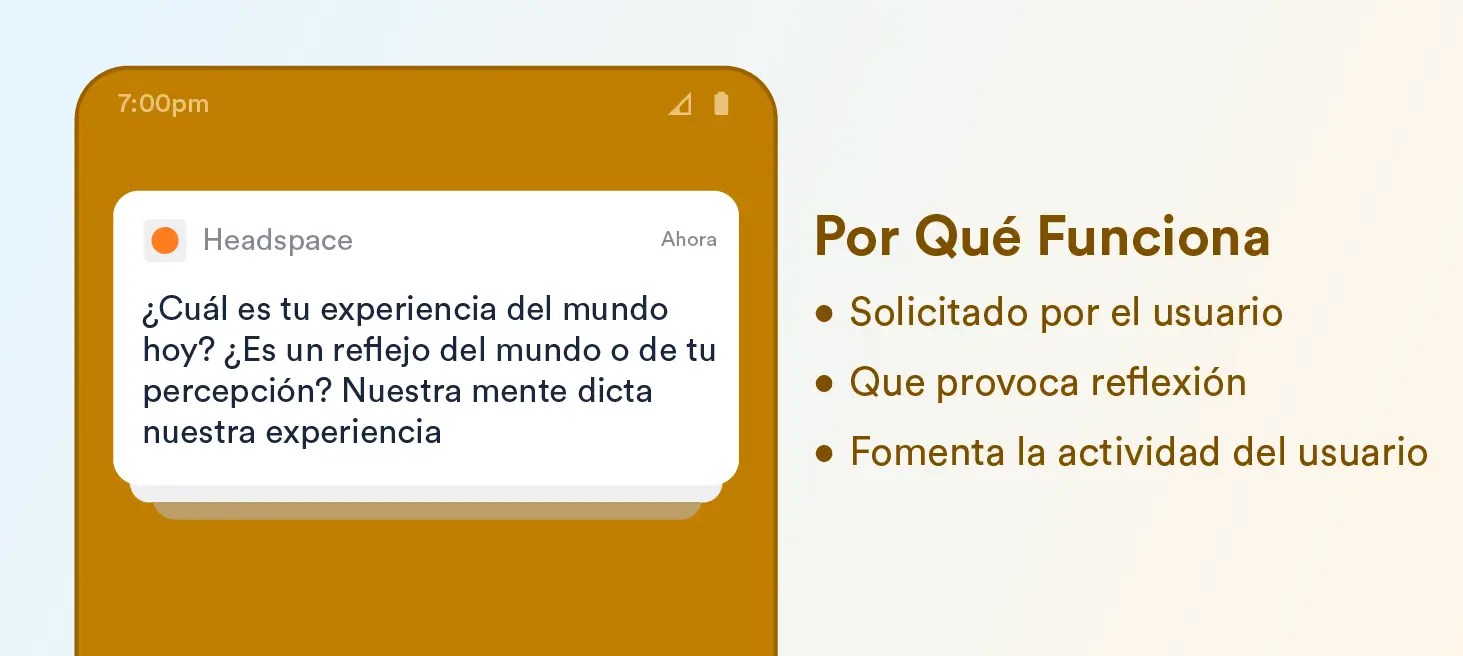 Accionable: Considera cómo estas notificaciones fomentarían una mentalidad que anime al usuario a meditar.