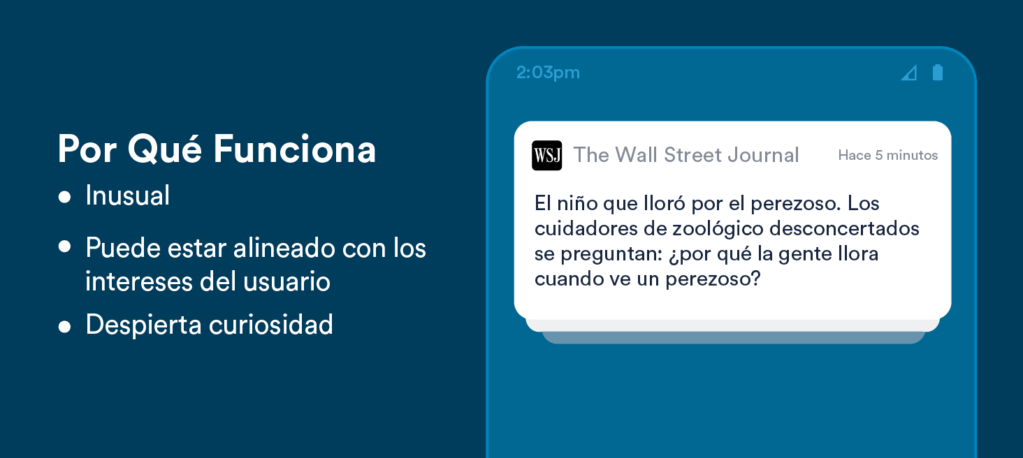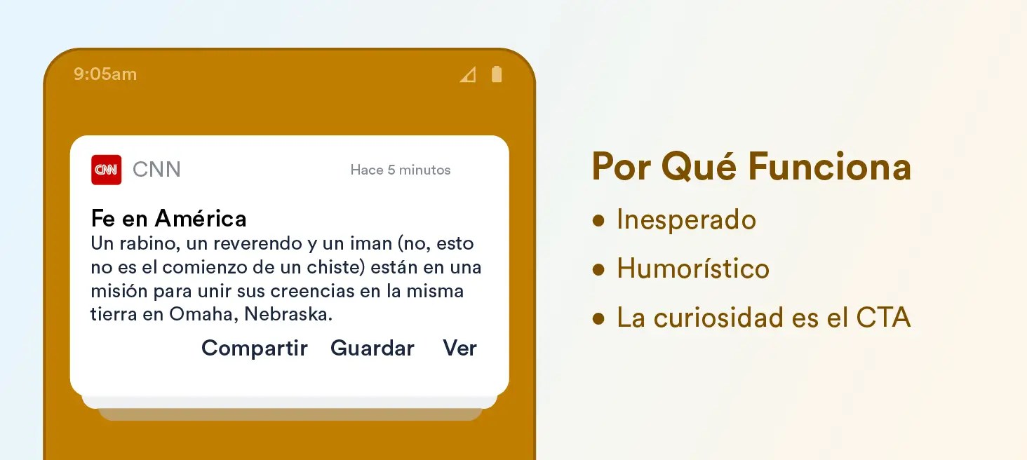 - Clickbait sin sustancia: Sí, siempre quieres despertar la curiosidad de tus usuarios. Pero si prometes que un usuario va a experimentar algo valioso al hacer clic en tu notificación, más vale que cumplas. Tu notificación push nunca debe escribir un cheque que tu contenido no pueda cobrar.