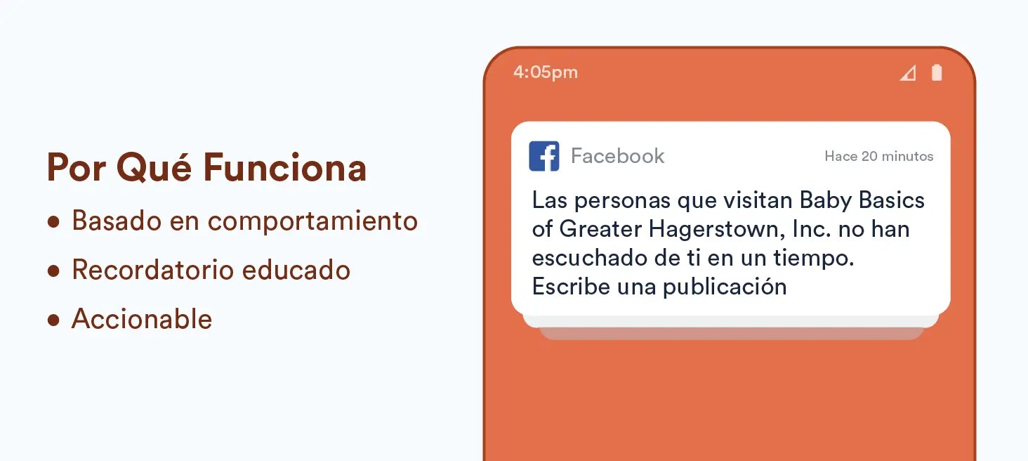 Personal: Esta notificación push puede ser un pequeño intento de hacer que alguien que maneja una página de Facebook se sienta culpable por no abrir la aplicación. Pero se