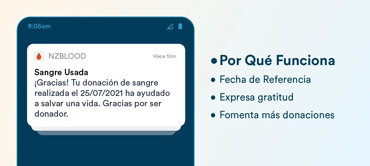 Accionable: Independientemente de si el usuario interactúa con la notificación o no, algo es claro: alguien que acaba de saber que su donación de sangre marcó la diferencia es más propenso a donar nuevamente.