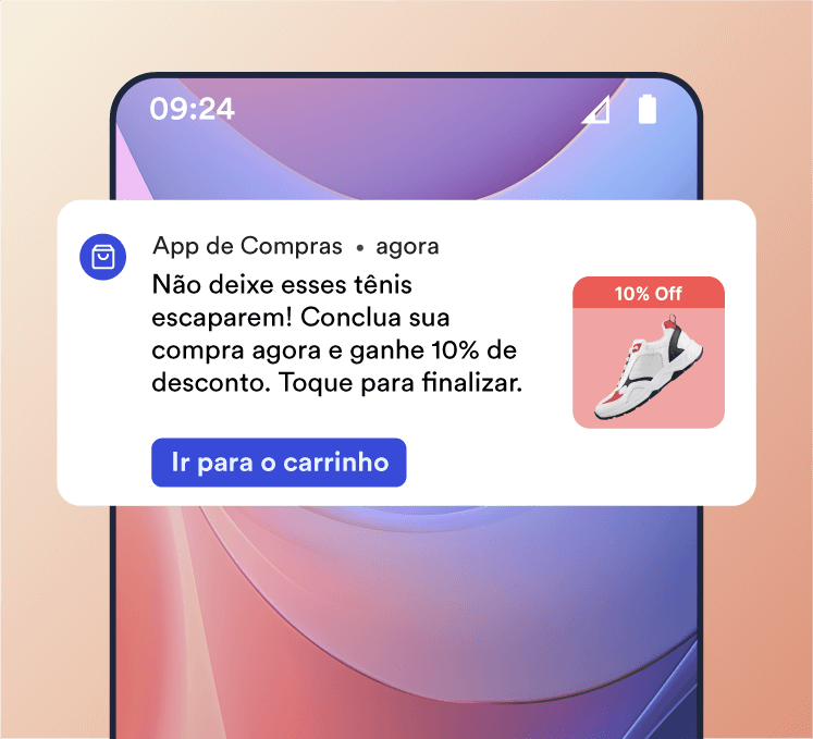 70% dos carrinhos online são abandonados, representando uma grande oportunidade de recuperação de receita. Notificações bem elaboradas ajudam a reduzir hesitações, distrações ou dúvidas e incentivam os usuários a voltar.