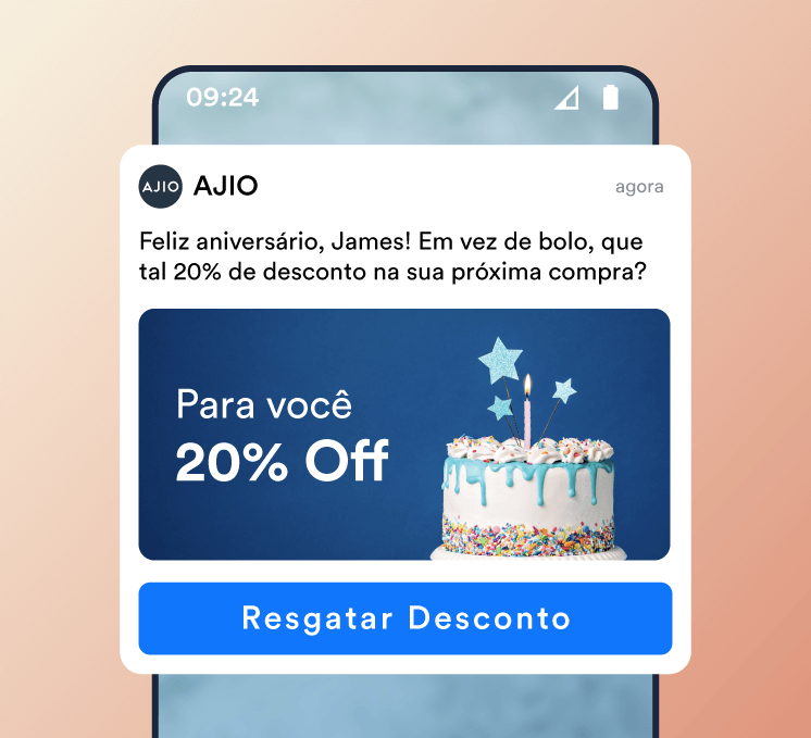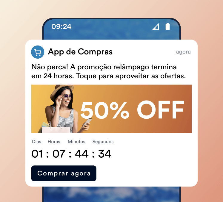 Combine recomendações personalizadas com ofertas por tempo limitado ou frete grátis para aumentar a taxa de cliques em notificações push e as conversões.