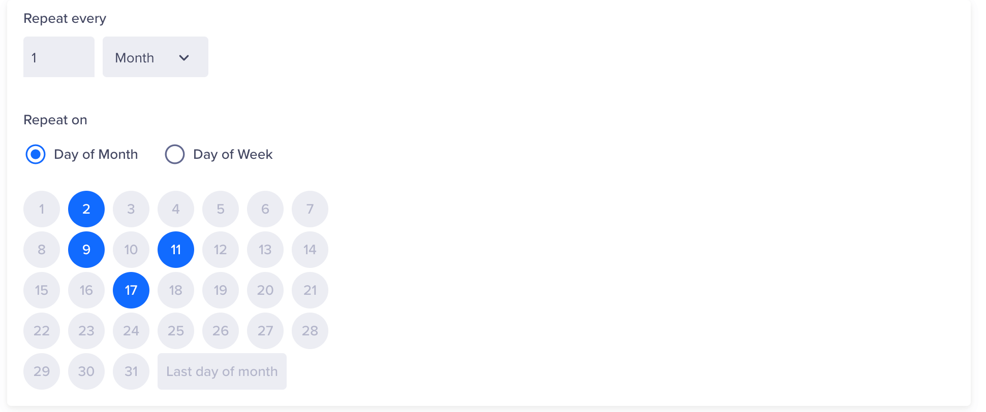 Con CleverTap puedes establecer una campaña como recurrente, y seleccionar la frecuencia con que la misma se repite. Nuestra herramienta te permite escoger el día de la semana o del mes en que iniciará tu campaña. Con ello te aseguras de no envíar mensajes a los clientes en los días no permitidos.