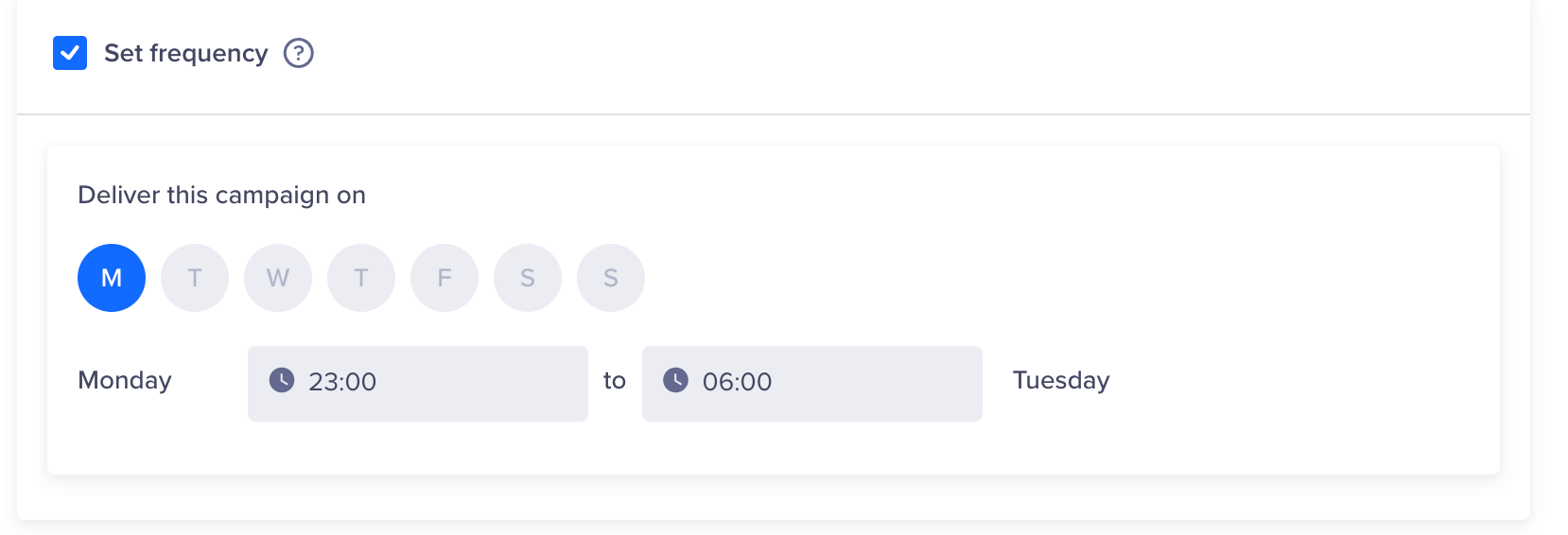 Para las campañas en línea, puedes seleccionar los días y la franja horaria en que se enviará el mensaje: