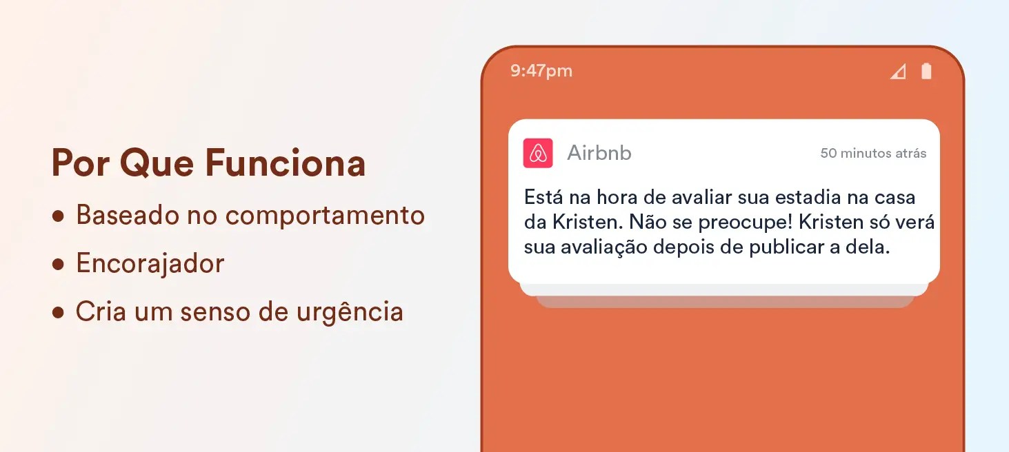 O aplicativo envia esta notificação logo após o usuário fazer o check-out da sua estadia no Airbnb.