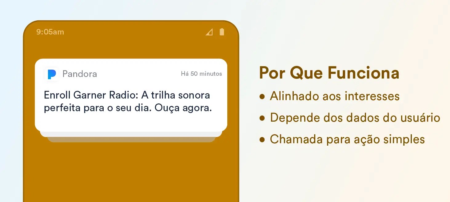 Pessoal: É provável que os usuários que receberam essa notificação escutem músicas como “rock clássico” ou “oldies”, o que torna essa notificação personalizada ao gosto deles.