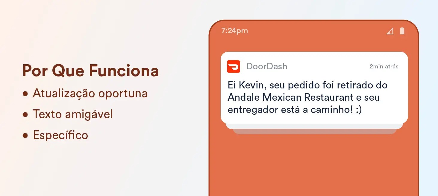 Não apenas essa notificação inclui o nome do usuário, mas também o nome do restaurante de onde ele fez o pedido e até um emoticon amigável de sorriso. Em um mundo digital repleto de mensagens automáticas, essa se destaca por ser extra-atenciosa.