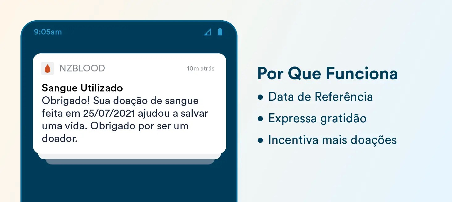 Acionável: Independentemente de o usuário clicar ou não na notificação, uma coisa é clara — alguém que acabou de descobrir que sua doação de sangue fez a diferença é mais propenso a doar novamente.