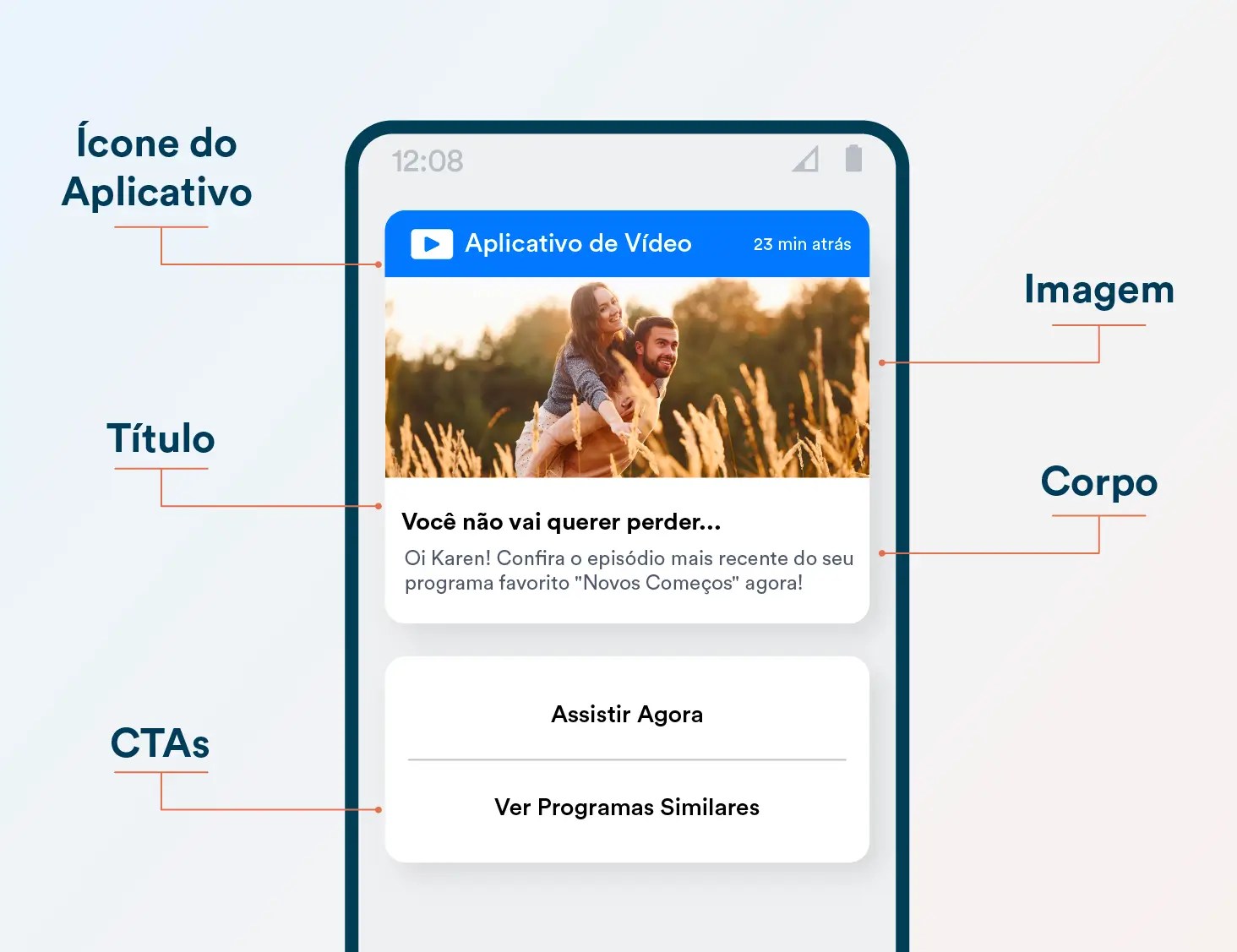 Atenção aos detalhes é importante para criar uma notificação push que realmente se destaque. Os seguintes componentes-chave ajudarão você a construir notificações eficazes e envolventes:
