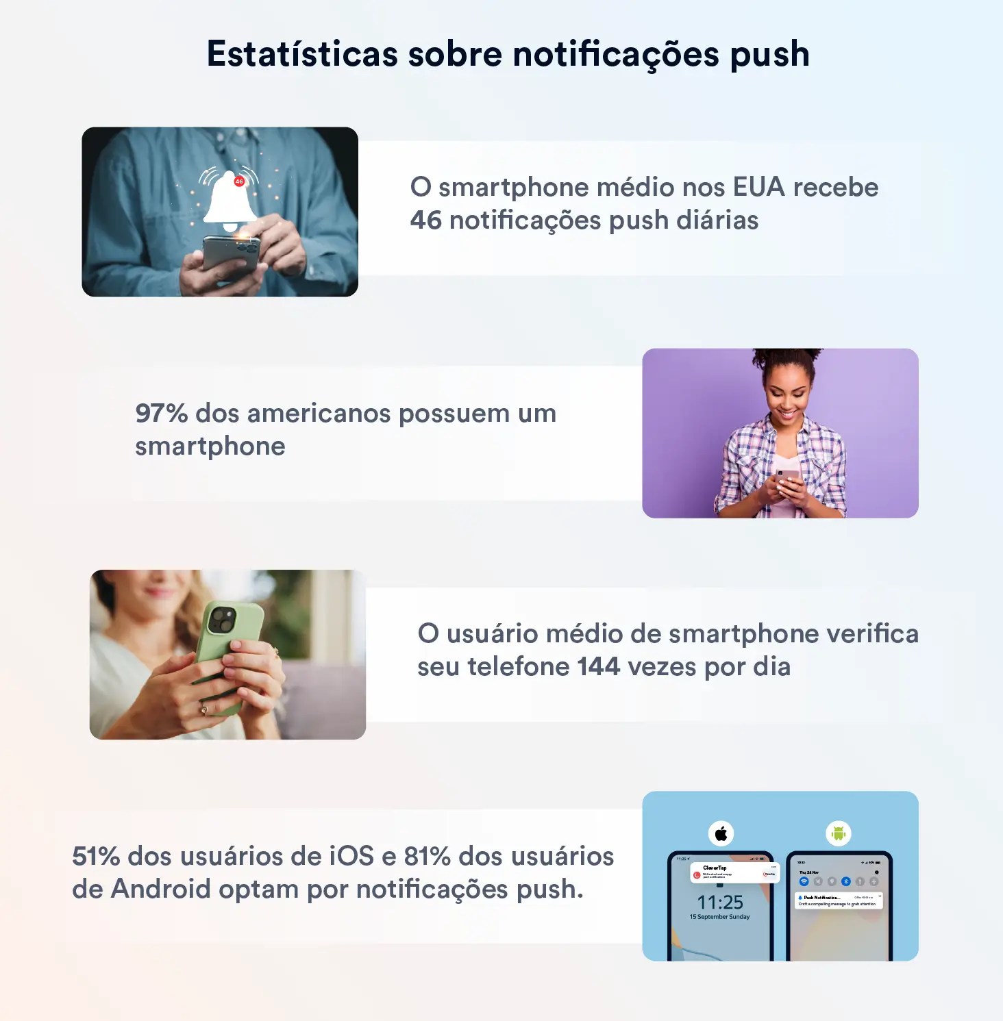 - Estudos mostram que o usuário médio de smartphone nos EUA recebe 46 notificações push por dia